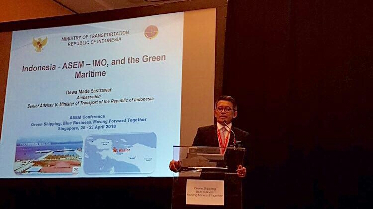 "Indonesia membangun infrastruktur-infrastruktur Maritim yang ramah lingkungan dengan tetap mempertahankan semangat Paris Agreement dalam isu Green House Gases (GHG) untuk mengurangi gas rumah kaca dan mendukung terwujudnya Sustainable Development Goals (SDG’s)," kata Dewa dalam pernyataannya, Rabu (2/5/2018) mengutip hasil presentasenya dalam Asia-Europe (ASEM) Conference on Green Shiphing, Blue Business Moving Together, yang berlangsung di Singapura, 26 - 27 April 2018.
